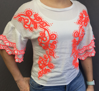Neben den Sticken und Strass sind auch Applikationen als Möglichkeiten gegeben.
